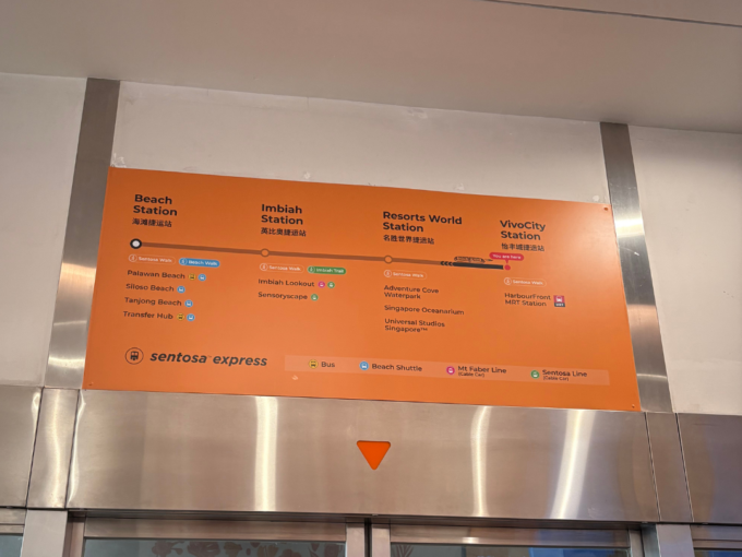 Sentosa Expressに乗るには、まずハーバーフロント駅へ。駅直結のショッピングモール「VivoCity」3階に乗り場があります。改札はタッチ決済に対応しているため、クレジットカードでそのまま乗車できます。Singapore Oceanariumの最寄りは「Resorts World Station」。VivoCity駅から1駅です。