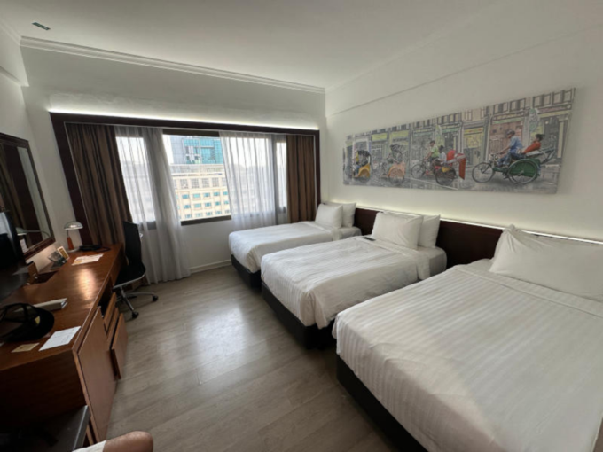 Sentosa Expressでシンガポール本島に戻り、次のホテルへ移動。このホテルは、前日に訪れたスルタンモスクのすぐ近くにあります。予約したファミリールームは32平米と広々しており、スーツケースを広げるスペースも十分でした。早朝にはモスクからアザーンの音が聞こえ、異国情緒を感じながら目覚めることができました。
