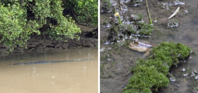 カフェテリアでは飲み物や軽食の自動販売機があり、スコールの際は屋根の下で休むこともできます。コースにより所要時間は異なりますが、休憩を含めて2時間〜4時間ほどが目安。野生のワニ(2mほど)、鳥、ハゼなどにも出会えました。